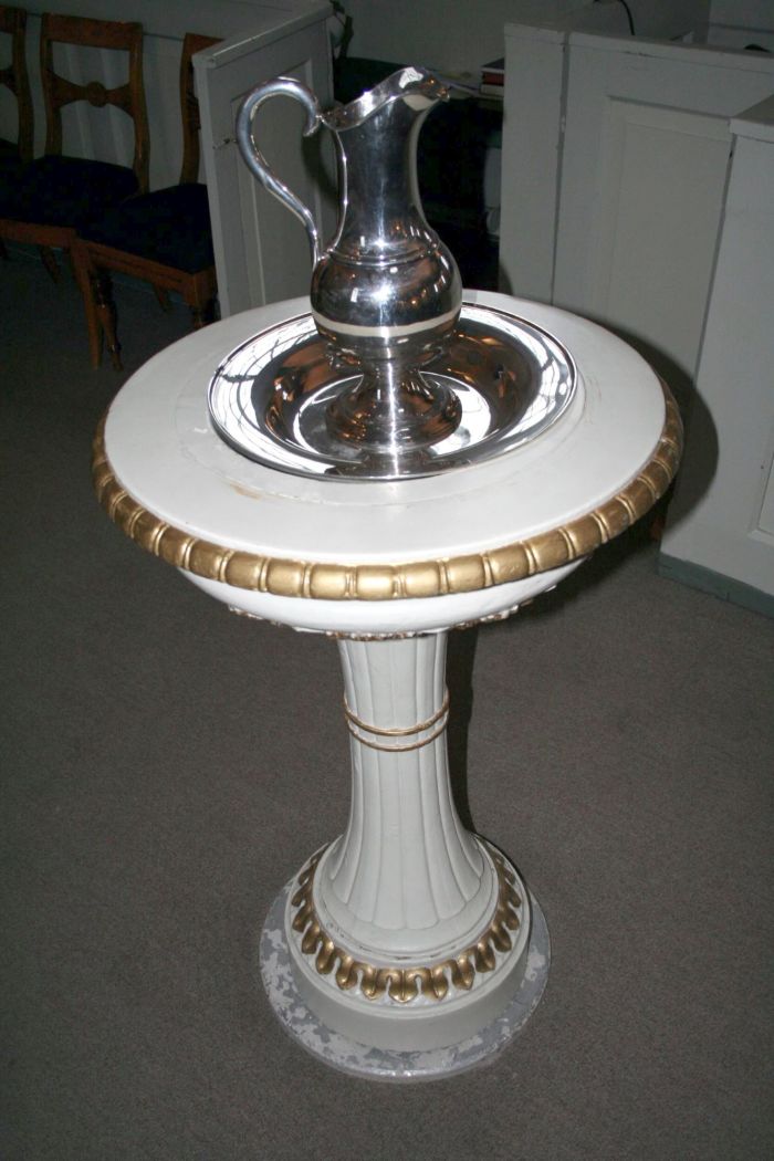 støpejern og skal være inspirert av en marmorfont i Garnisonskirken i København.