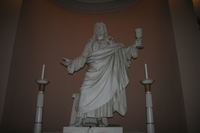 billedhuggeren Johan Niclas Bystrøm etter oppdrag av kong Karl Johan. Dette er en reproduksjon hvor originalen står i Linköpings domkirke. Trolig er