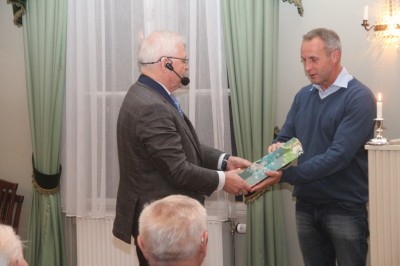 Etter det interessante foredraget ble det stilt en del spørsmål, som foredragsholderen velvillig besvarte. Han fikk så med stort takk overrakt en avlang plastpose av presidenten.