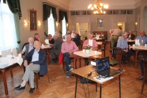 Vakkert sommervær. Bare 11 medlemmer møtte opp i lille peisestue. Men det ble rikelig med diskusjoner!