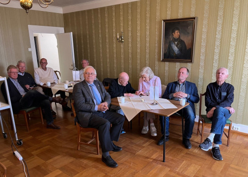 Vakkert sommervær. Bare 11 medlemmer møtte opp i lille peisestue. Men det ble rikelig med diskusjoner!
