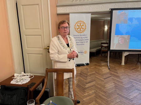 Hun refererte fra møte med RI presidenten som bl. annet ønsker fire nye klubber i hvert distrikt og 100 nye medlemmer i hvert distrikt.