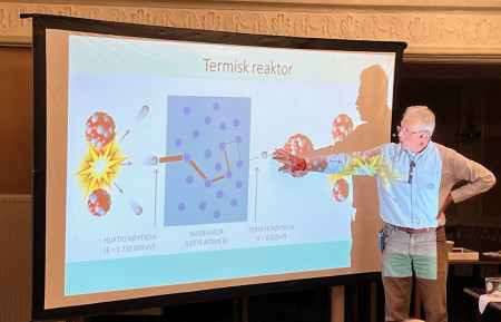 Presidenten presentere så kveldens foredragsholder, medlem i Halden Rotary Klubb, Svein Nøvik, utdannet kjernekjemiker fra Blindern. Han har blant annet arbeidet som seniorforsker ved IFE i Halden. Han er engasjert i foreningen Klimavenner for kjernekraft.