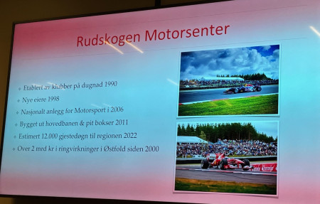 Til sist fikk vi en orientering om Rudskogen Motorsenter, som er et nasjonalt senter for motorsport. Det har vært betydelig utbygging av bygningsmassen de senere årene omfattende alt fra verksted fasiliteter til showrom, konferanserom og restaurant virksomhet.