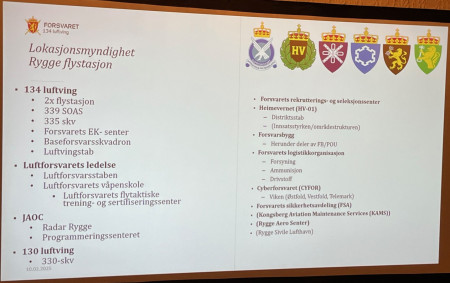 Foredraget tittel var: Rygge Flystasjon, fra nedlagt til Norges tredje viktigste flystasjon.