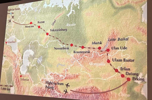 Reisen hadde gått fra Moskva til Beijing og vi fikk høre om den delen av reisen som varte frem til Ulaan Baatar i Mongolia, levende fremstilt, detaljrikt med bilder på Johns sedvanlige interessante fortellermåte.